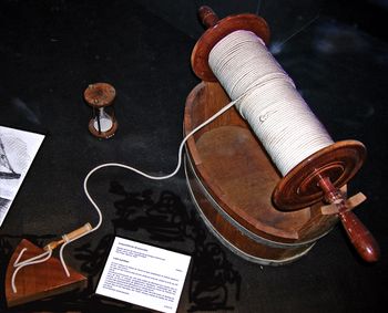 اشتملت على مقياس الرُقَاقَة والمقياس الخلفي. كان مقياس الرقاقة لوحًا رقيقًا على شكل ربع دائرة، يلقيه البحَّار في الماء خلف السفينة، فكان مربوطًا بحبل ملفوف على بكرة يُفَكُّ عنها مع تحرك السفينة. وكان البحار يستطيع تحديد سرعة السفينة بملاحظة طول الحبل الذي انحل في وقت محدد. أما المقياس الخلفي، فكان يشتمل على دَوَّار ذي أذرع حلزونية، تجعله يدور مع سحب السفينة له في الماء. ويتصل الدوَّار بمسجل يبين المسافة المقطوعة. وكان على البحار أخذ قراءتين مع معرفة الفترة الزمنية بينهما، لتحديد سرعة السفينة.