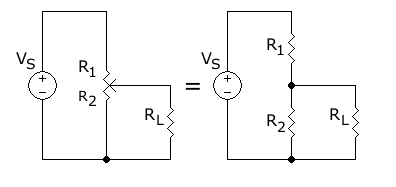 - Potentiometer calculations as voltage divider - loaded and open circuit (unloaded)