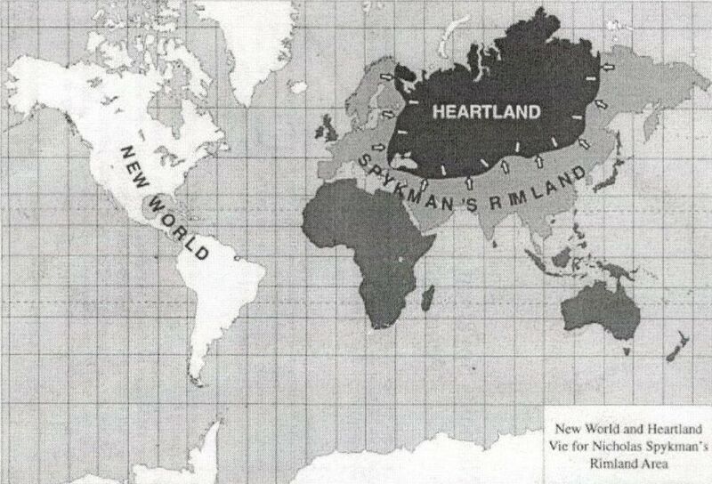 English: Geopolitical conceptualization of the world according to Heartland and Rimland doctrines