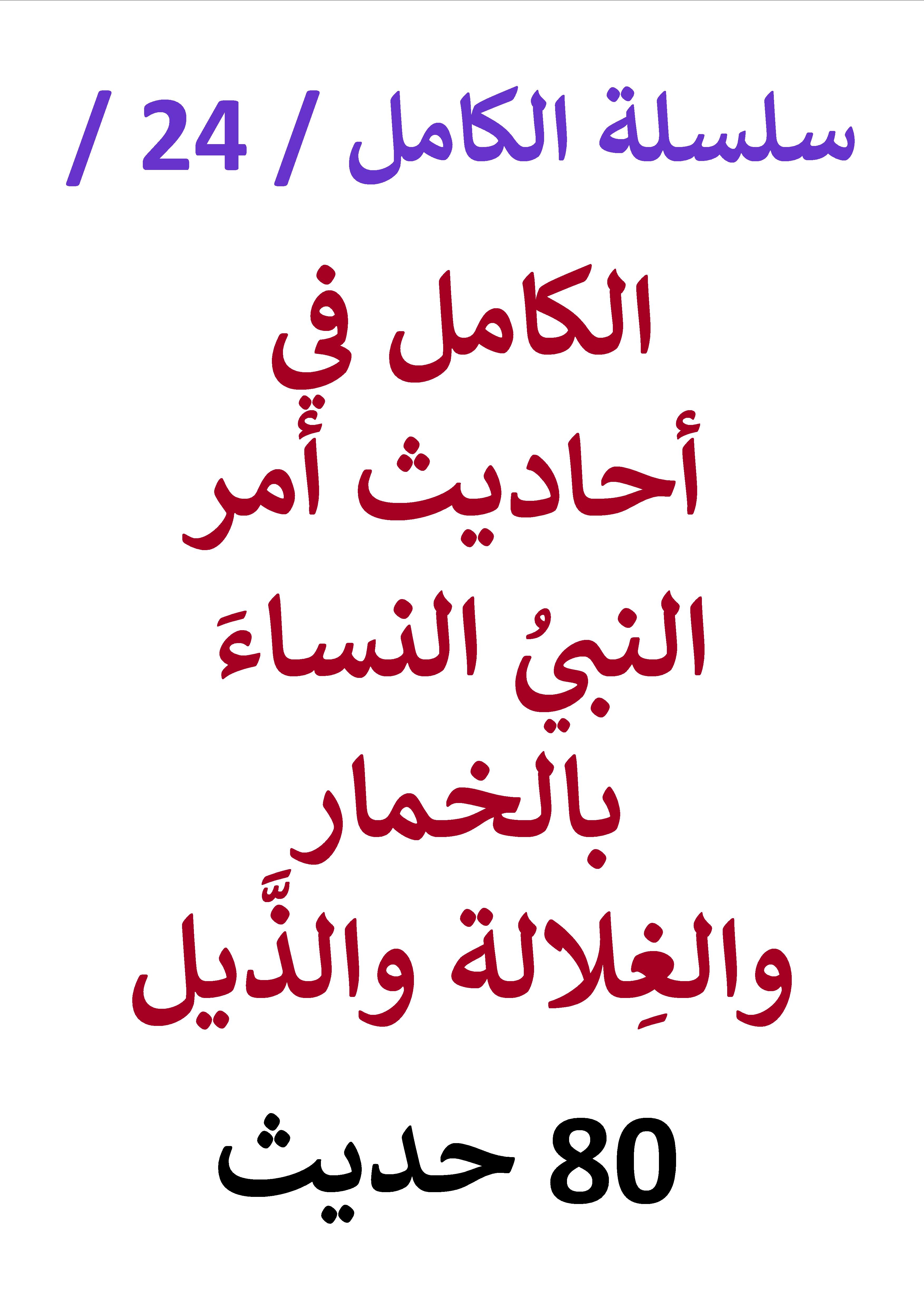 سلسلة الكامل / كتاب رقم 24 / الكامل في أحاديث أمر النبي النساء بالخمار والغِلالة والذَّيل ، وما تبعها من أقاويل / ( 80 ) حديث