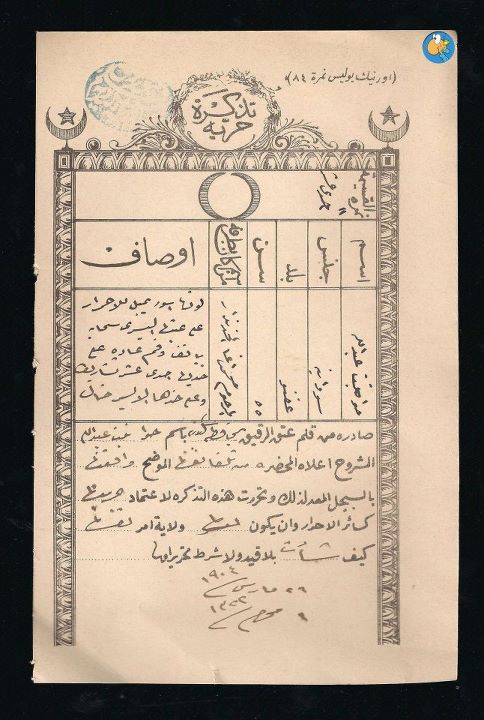 ملف:تذكرة حرية عبد من الرقيق، مصر 1904.jpg
