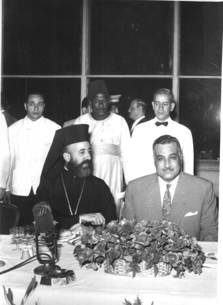 ملف:جمال عبد الناصر ومكاريوس الثالث، القاهرة 1963.jpg