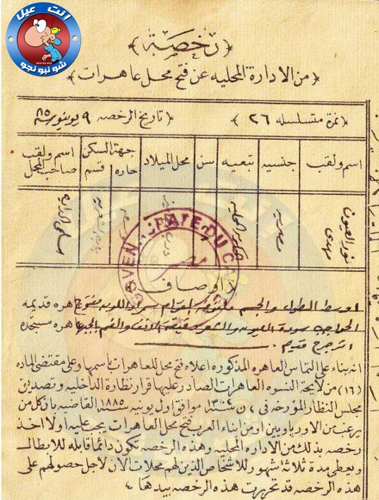 ملف:رخصة فتح محل للعاهرات، مصر 1885.jpg
