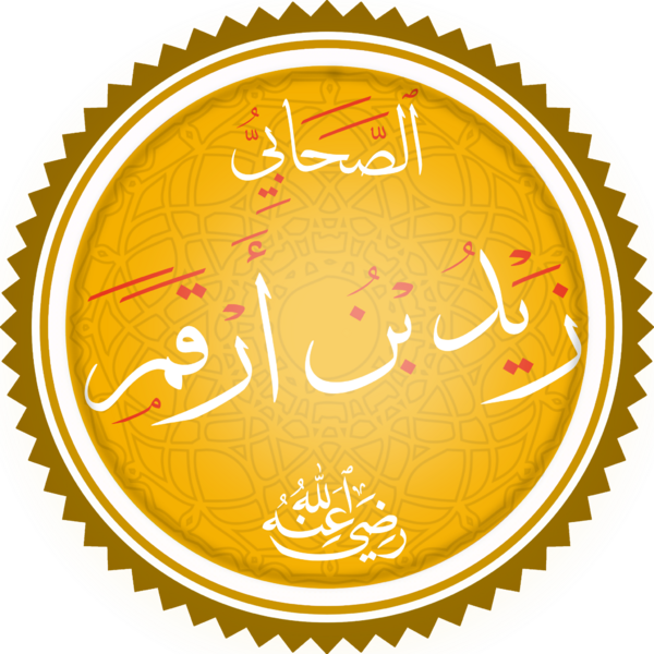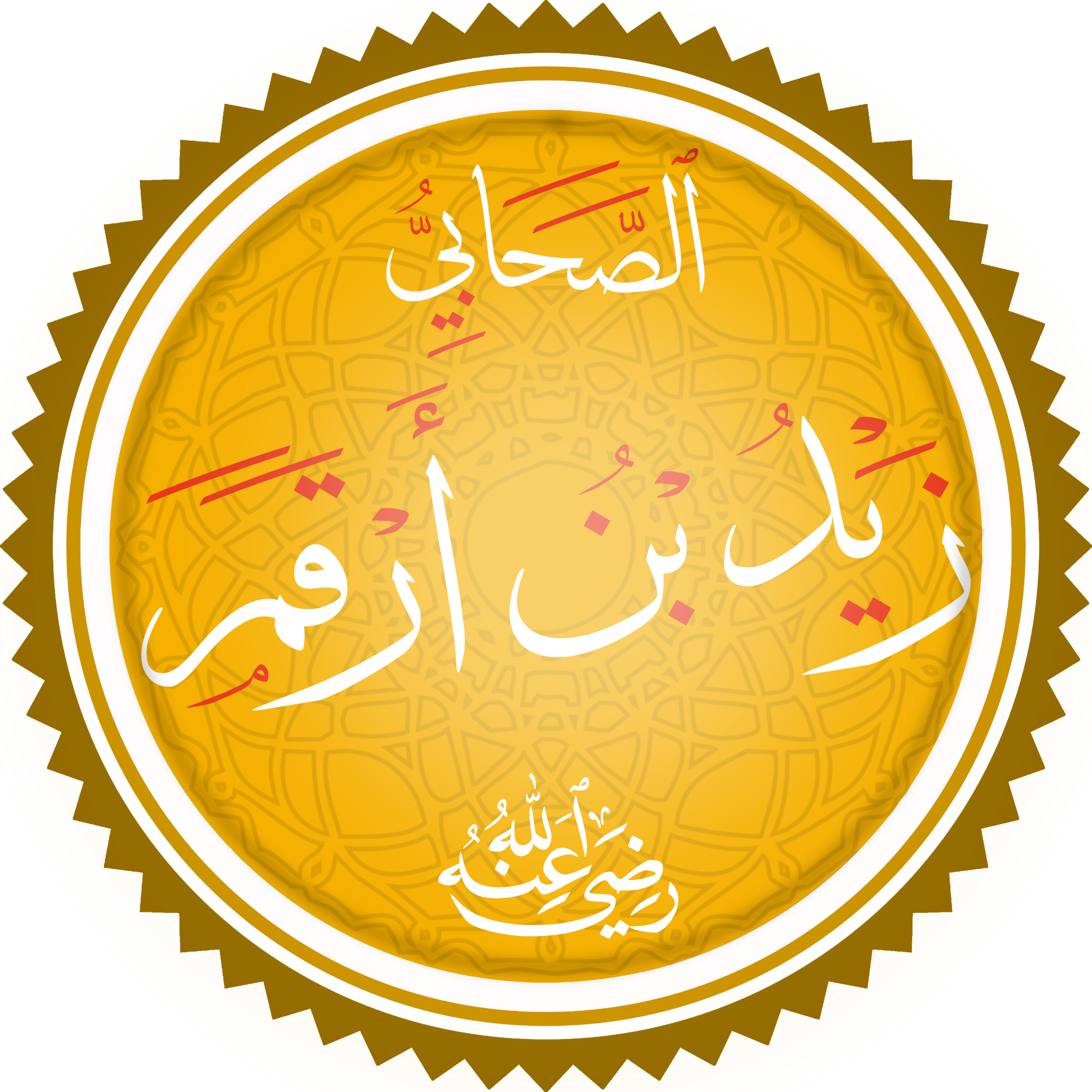 العربية: تخطيط اسم الصَّحابي زيد بن أرقم بخطِّ الثُّلث ملحوقًا بالترضي عنه.