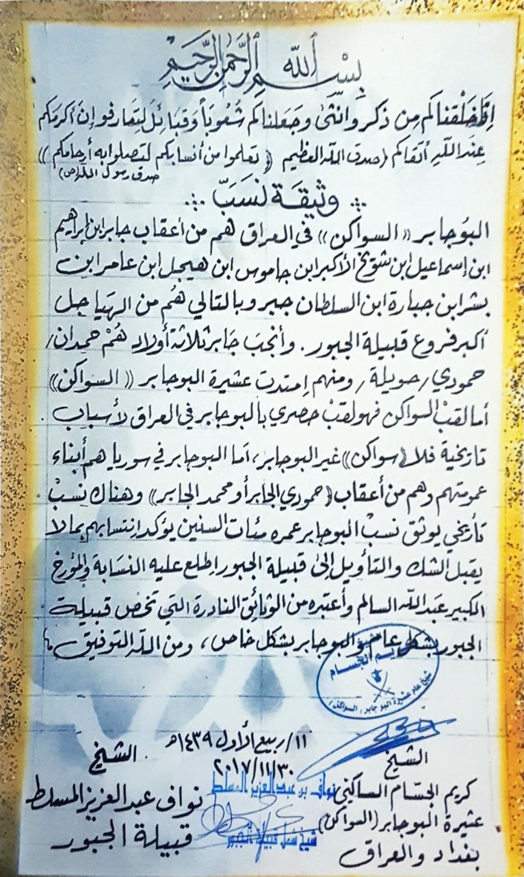 ملف:مصدقة نسب البوجابر في سوريا.jpeg