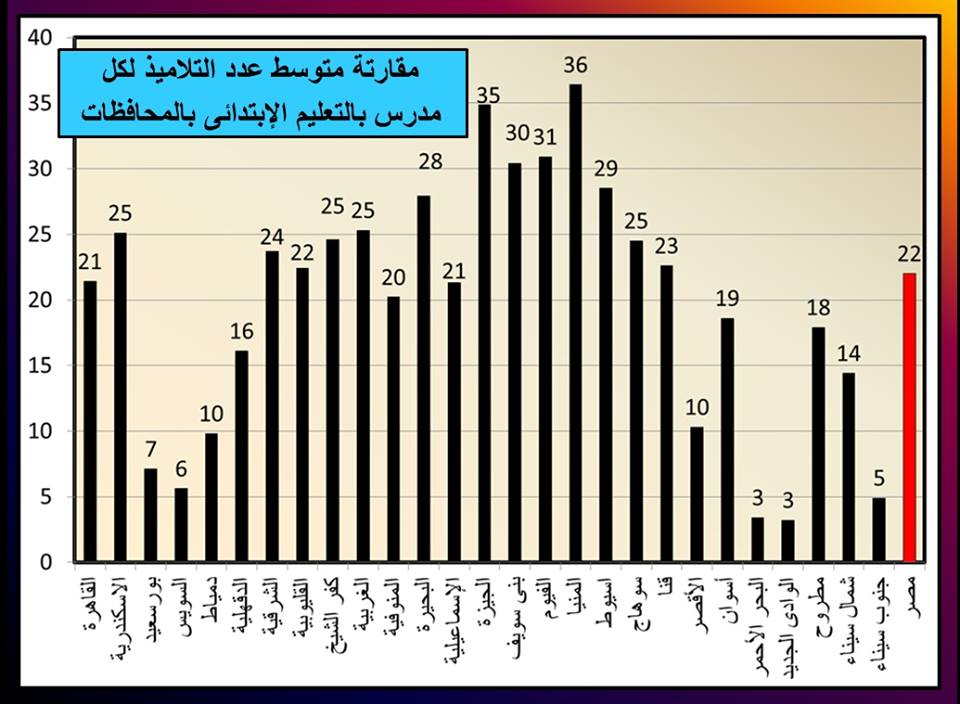 ملف:مقارنة متوسط عدد التلاميذ لكل مدرس بالتعليم الابتدائي بالمحافظات المصرية.jpg