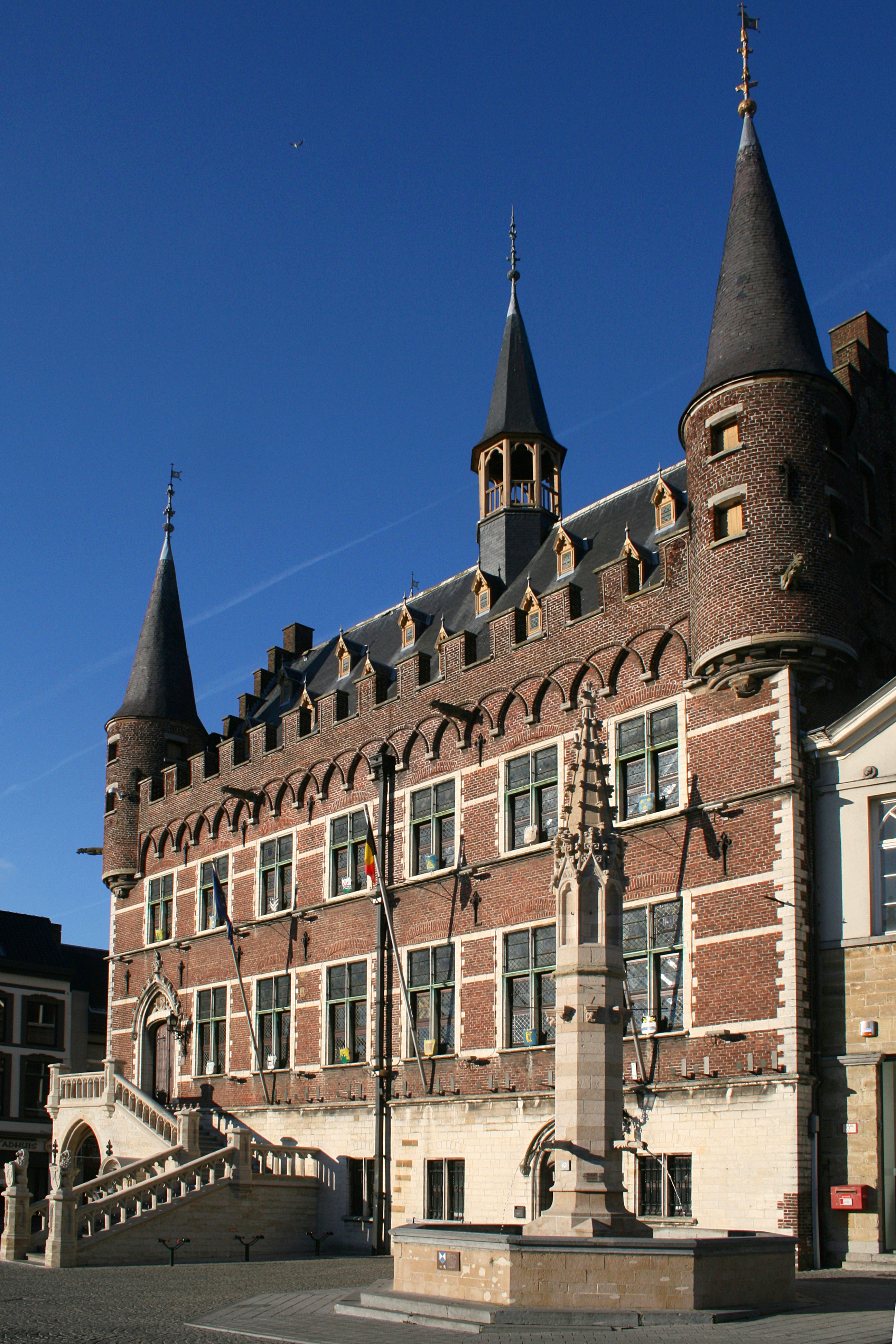 English: Geraardsbergen (Belgium), the town hall and the Marbol fountain.