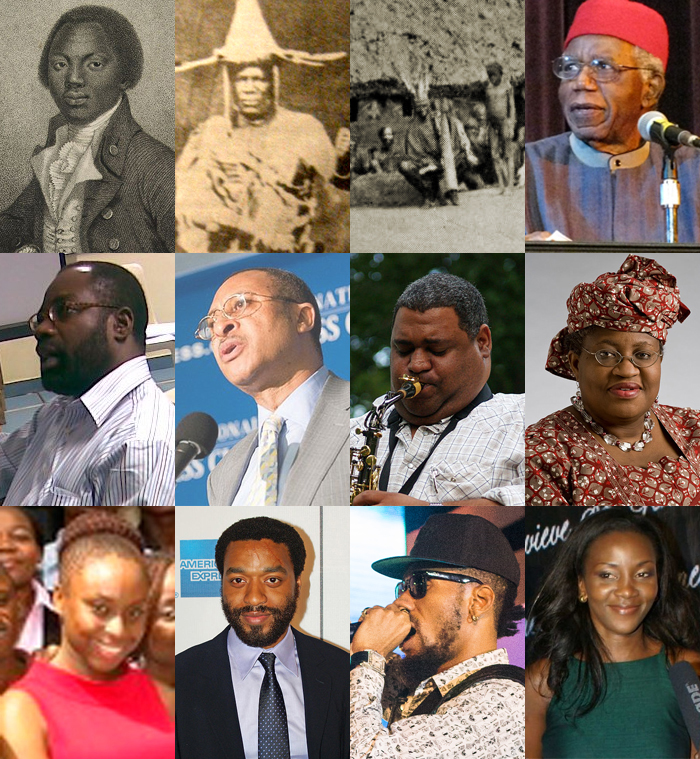 ⧼wm-license-information-author⧽ | From top left: Unknown artist; unknown photographer; Northcote Thomas; Rahulghose at http://en.wikipedia.org; Edirin247 at en:wikipedia.org; David Shankbone; International Monetary Fund (photographer uncredited); US Government (photographer uncredited); David Shankbone; Emily Nkanga; Niyi Tabiti |