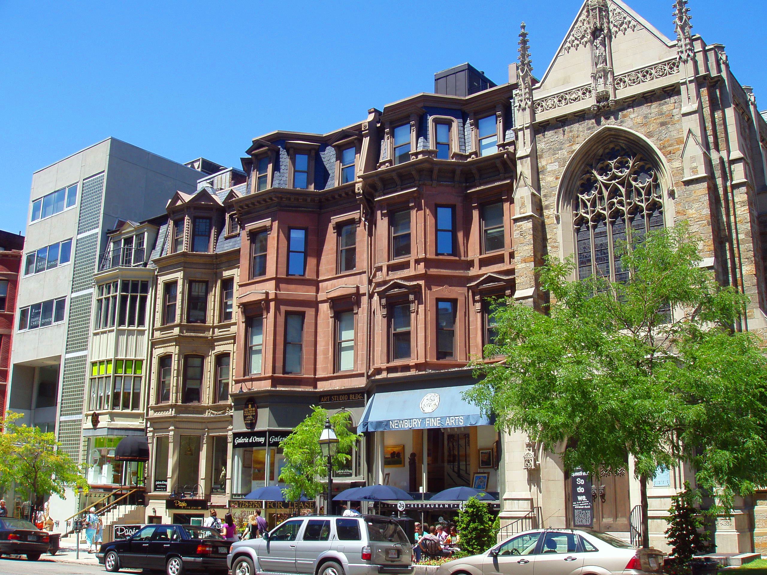 - 2005-07-25 00:13 Daderot 2560×1920 (1008521 bytes) {{GFDL}}A mix of architectural styles along Newbury Street near the Public Garden, Boston, Massachusetts. Photograph taken by me, July 2005.