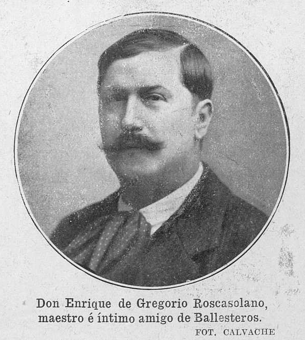 ⧼wm-license-information-source⧽ | "Don Enrique de Gregorio Rocasolano, maestro e íntimo amigo de Ballesteros". La Lidia. año III (11): 6. 1916-04-17. ISSN 1885-4591. |