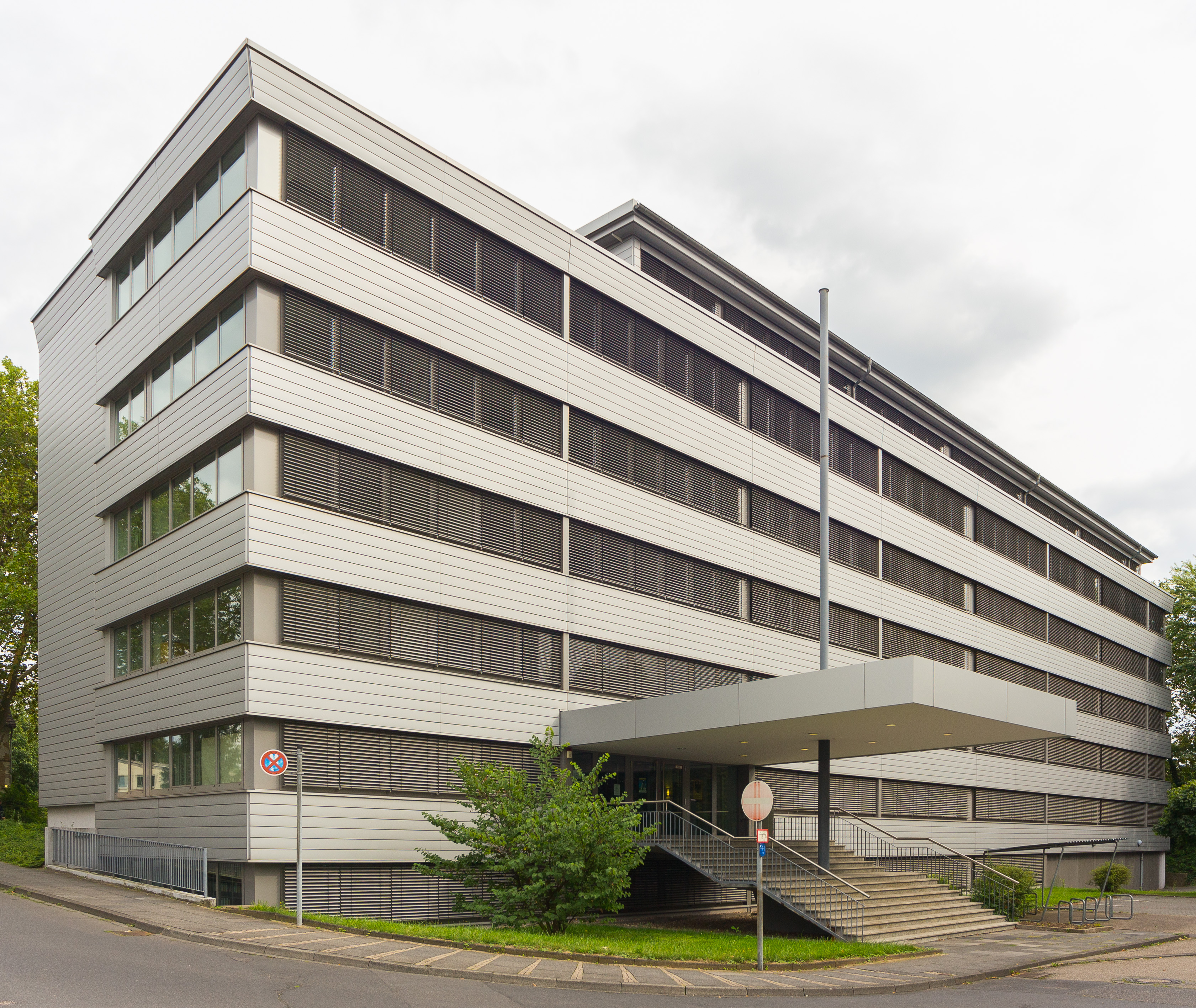 English: Office building of the Federal Central Tax Office, Platanenweg 33, Bonn-Beuel: view direction South-east