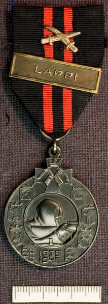 English: Finnish commemorative medal of the Winter War. Finnish: Talvisodan muistomitali, Swedish: Vinterkrigets minnesmedalj.