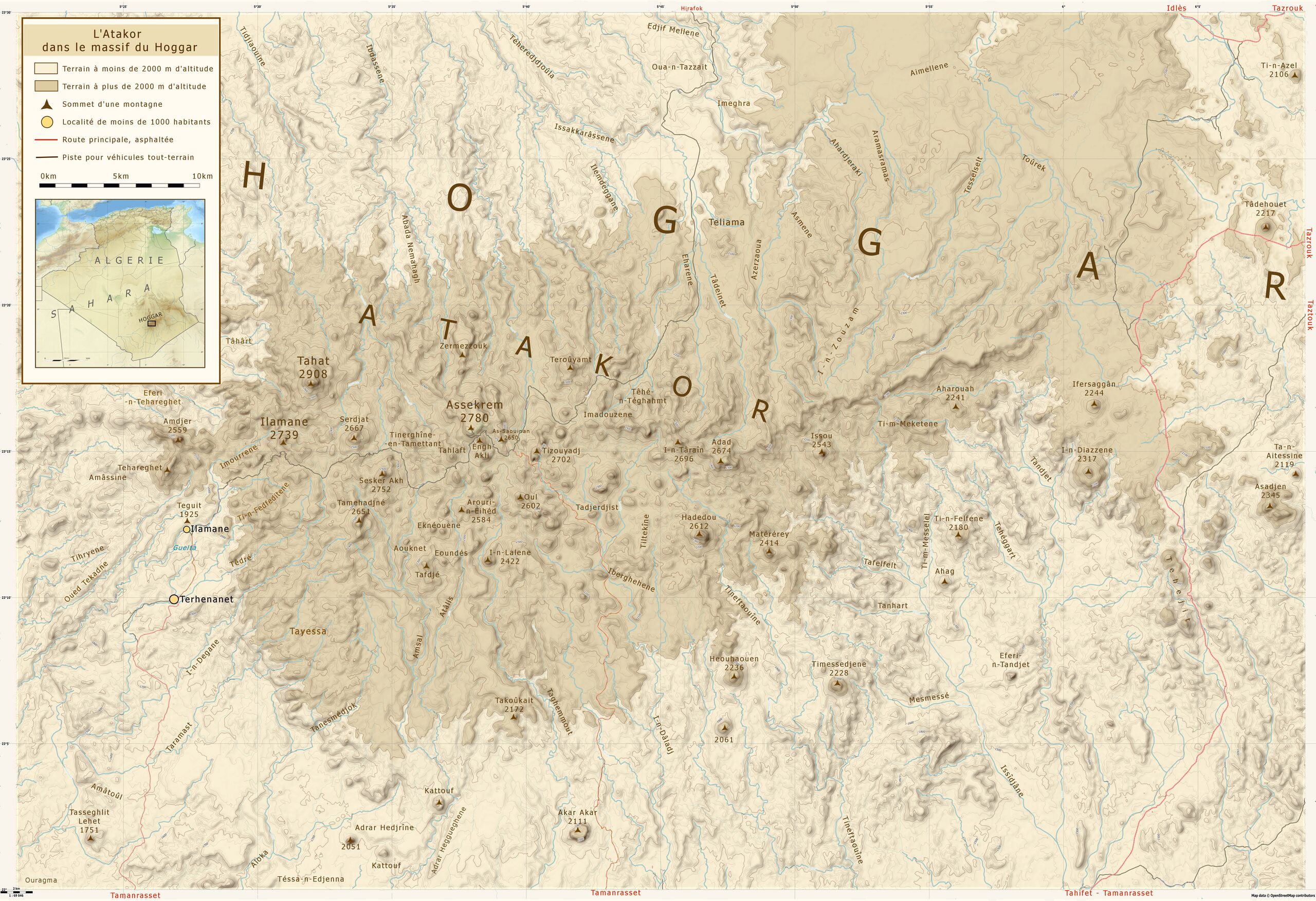 Français : Carte topographique de l'Atakor dans le massif du Hoggar