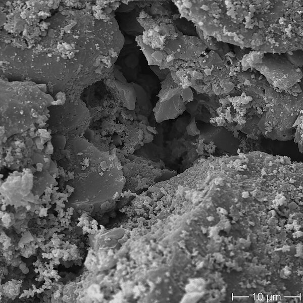 English: Scanning electron microscope (SEM) photo of activated charcoal