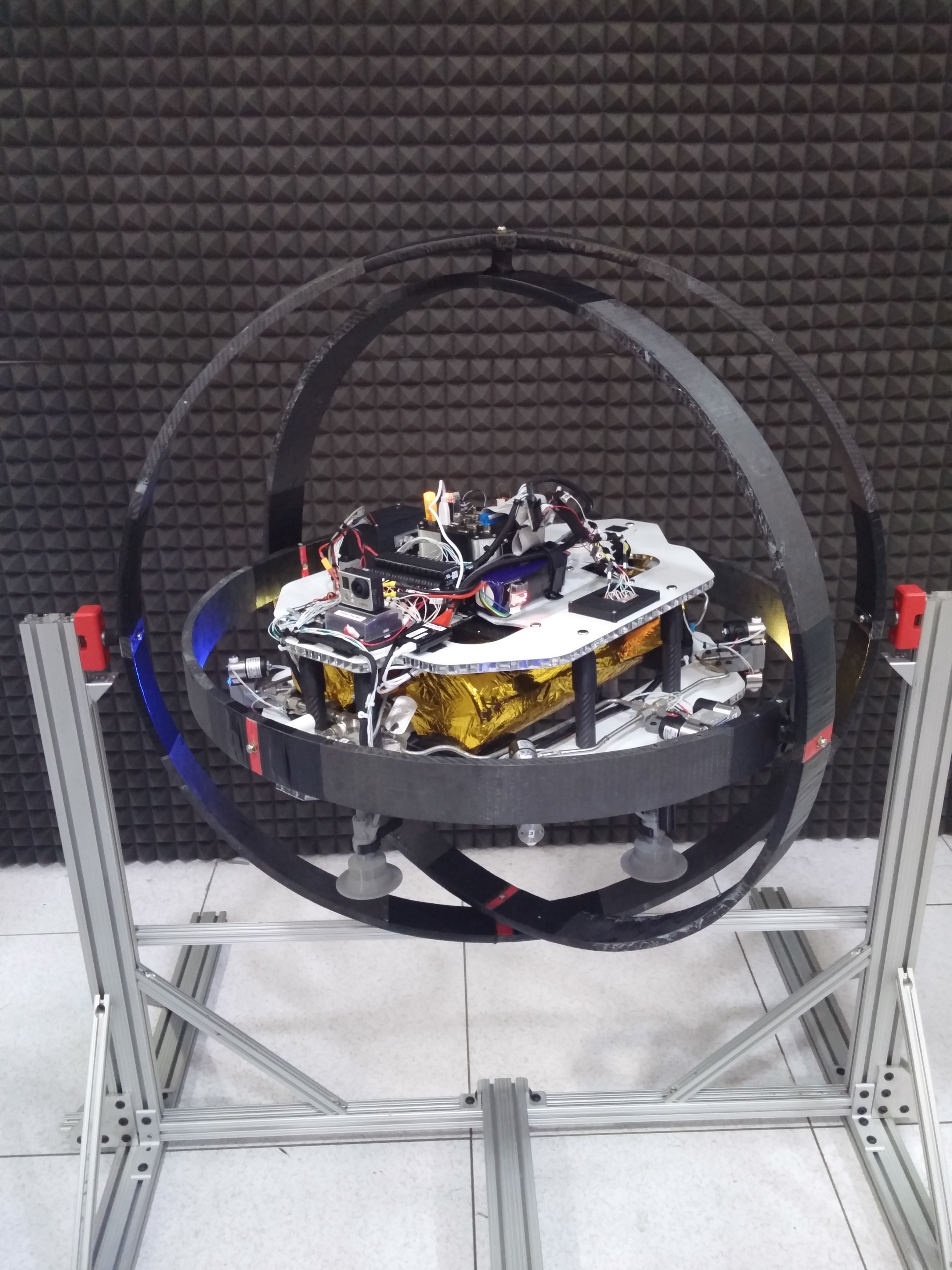 English: The Asteroid Prospector Flyer prototype in a testing gimbal.