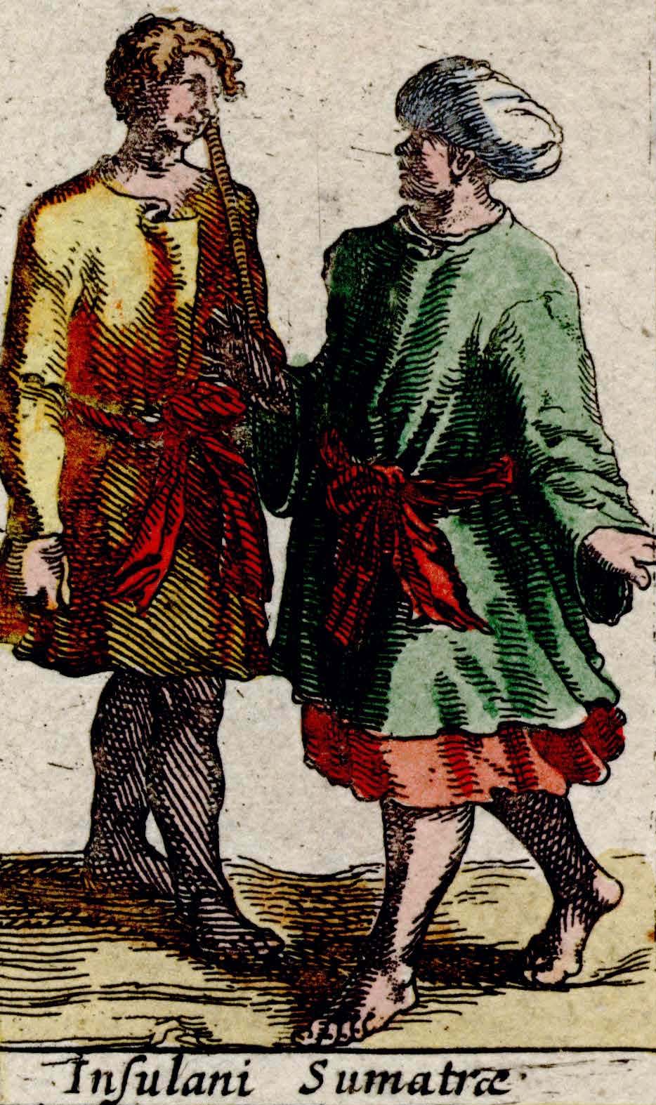 English: Sumatran islanders imaged in the map "Asia noviter delineata"