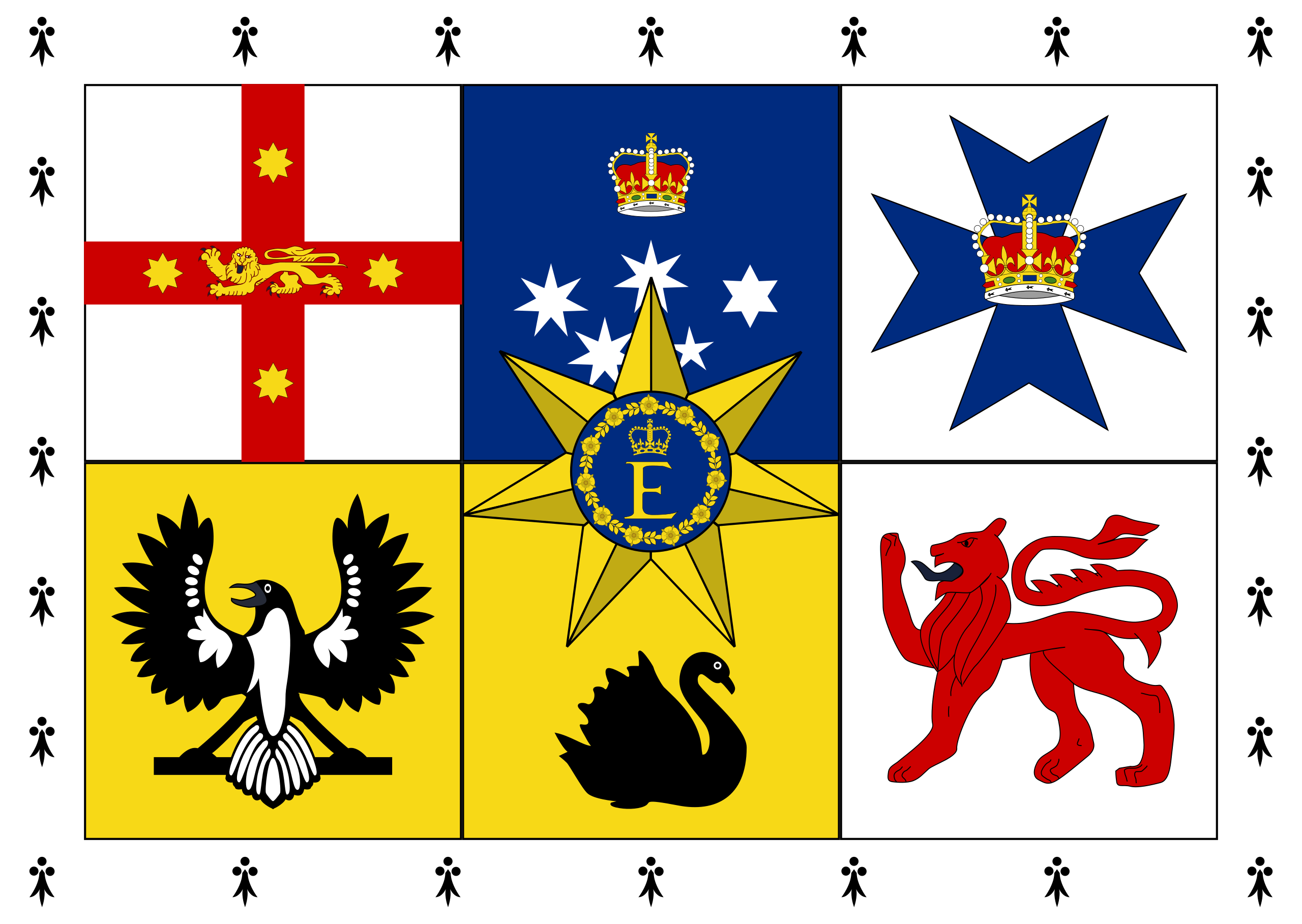 - FOTW, "my information is that the actual flags used by the Queen in her recent Australian tour continued to show the swan facing the fly. The reason for this is that notwithstanding the change to the WA flag badge, the Australian Coat of Arms has not been altered and since the Queen's flag is a defaced banner of the arms, the swan should not be changed." (Accessed 4 Feb 06)