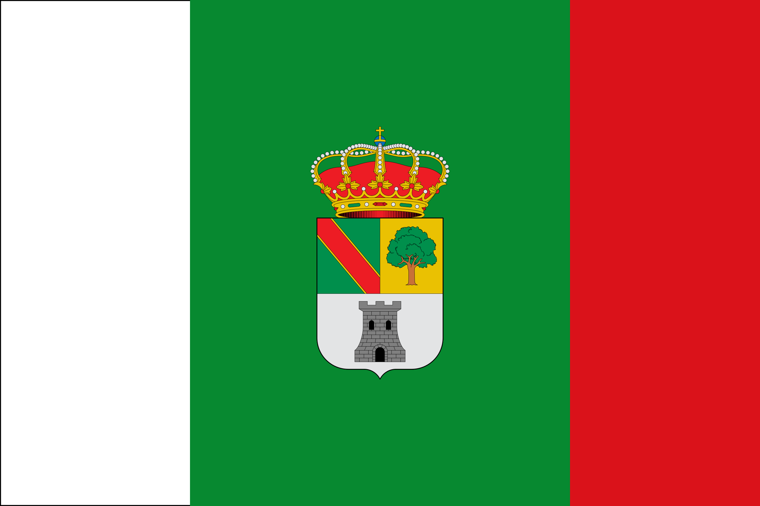 Paño de proporciones 2/3 (ancho por largo). Dividido verticalmente en tres franjas; la del medio verde que es doble de las exteriores, blanco al asta y rojo al batiente; en el centro de la bandera, el escudo heráldico municipal. Referencia: B.O.J.A. nº 52 de 14/03/2008 |