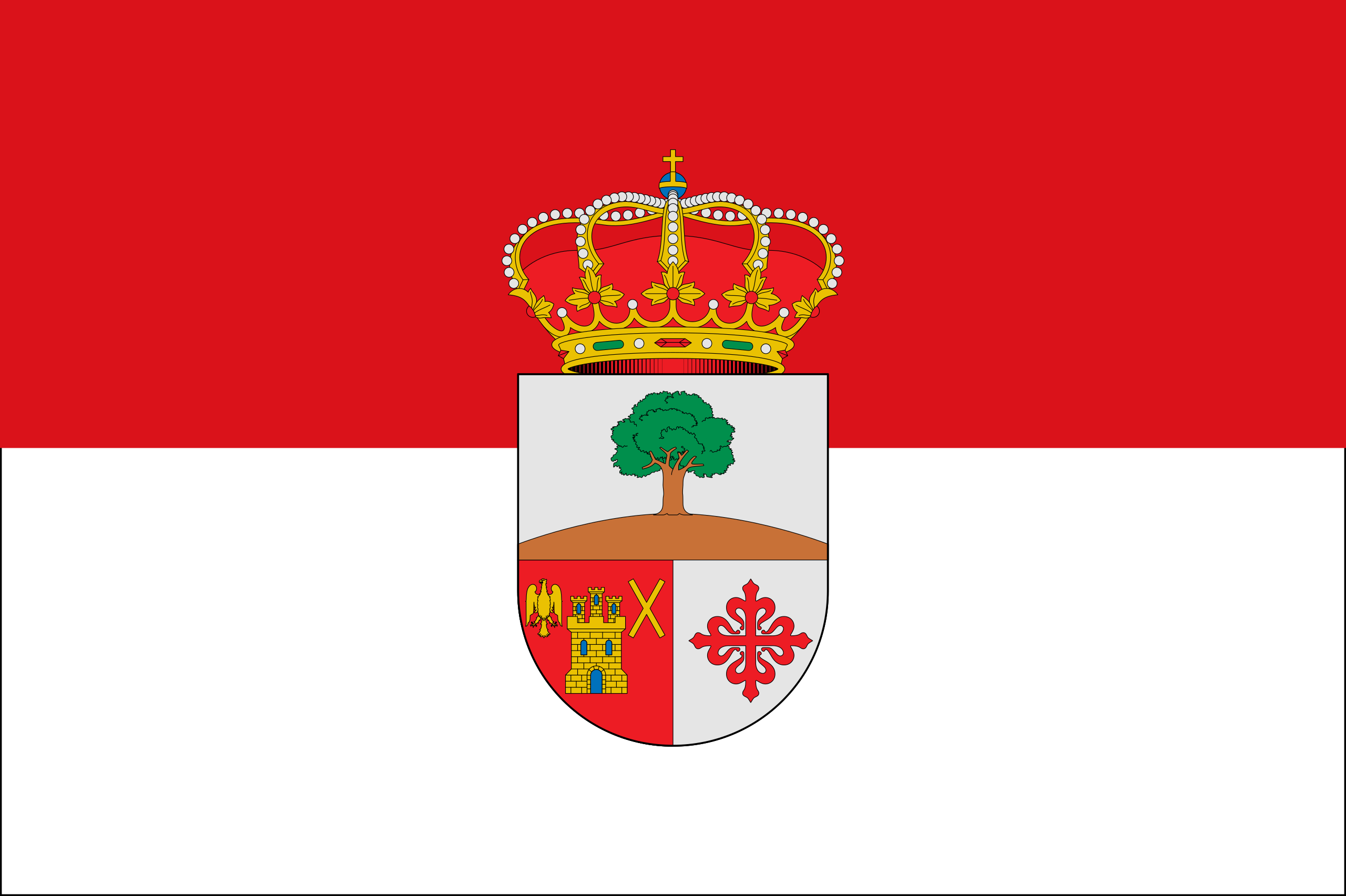 Bandera rectangular, tres módulos de larga por cada dos de ancha, cortada [horizontalmente] en dos partes iguales, la mitad superior rojo bandera y la mitad inferior blanca; cargado sobre su eje geométrico, en el centro del vexilo, el escudo del municipio con su timbre y con una altura igual a 2/3 del ancho del vexilo. Referencia: B.O.J.A. n.º 53 de 12/05/1998 |