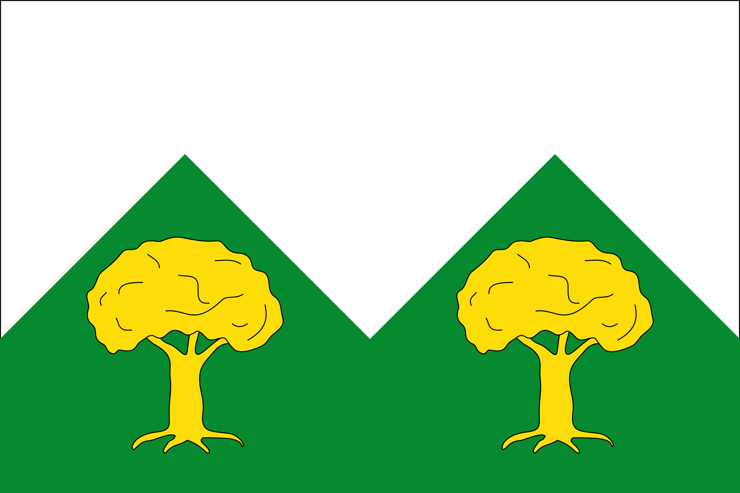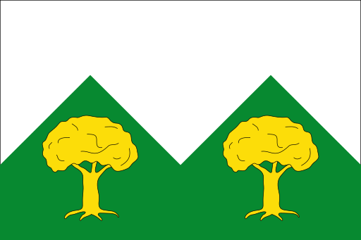 Paño rectangular de proporciones 3:2 (largo por ancho); encajada horizontal dividiendo la bandera en dos partes horizontales de similar superficie y de forma complementaria la una con la otra mediante dos encajes entrantes enteros; la parte superior blanca y la inferior verde con dos olivos arrancados amarillos, en la disposición que figuran en el escudo. Referencia: B.O.J.A. n.º 44 de 05/03/2010 |