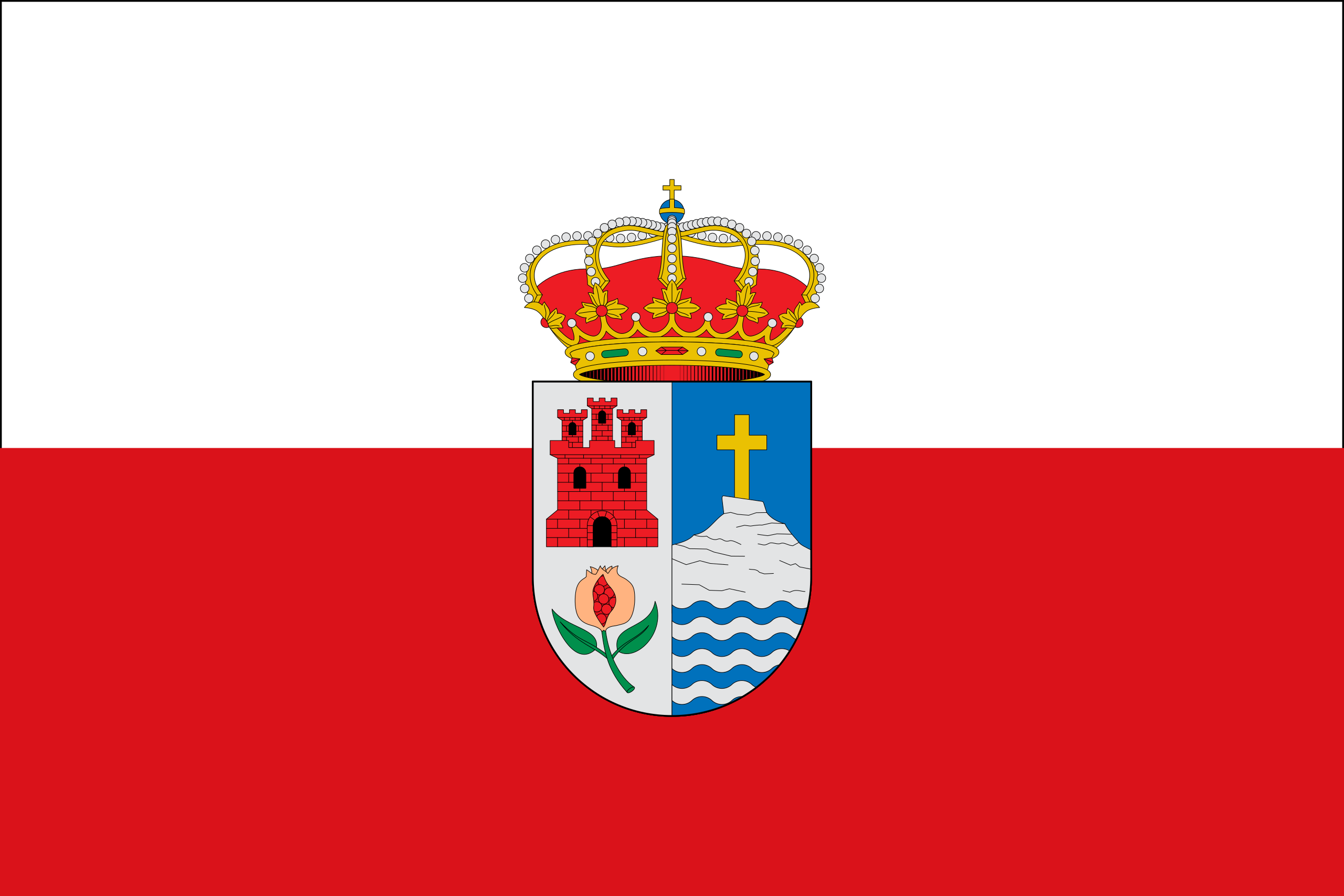 Paño rectangular de proporción 2:3, dividida horizontalmente en dos franjas de igual tamaño, blanca la superior y roja la inferior, con el escudo municipal sobrepuesto al centro del paño. Referencia: B.O.J.A. nº 244 de 16/12/2005 |