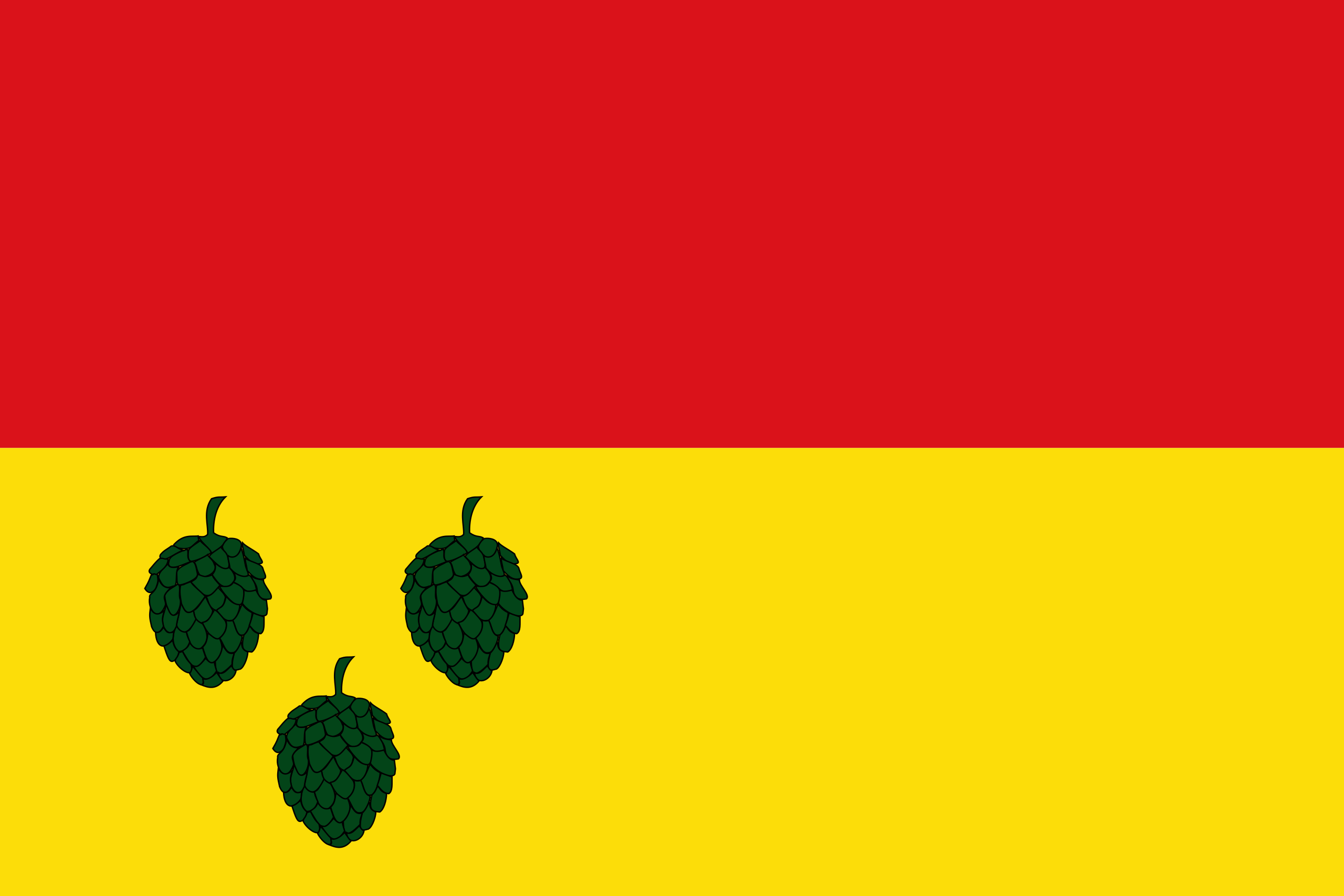 Español: Bandera de la Quart, Barcelona, España. Bandera de proporciones 2:3, bicolor horizontal rojo y amarillo, con las tres piñas verde oscuro del escudo, cada una de altura 3/14 de la del paño y de anchura 2/21 de la largura del mismo paño, la primera puesta a 3/56 del comienzo de la segunda mitad horizontal del paño y a 3/28 del borde del asta; la segunda, a la misma distancia de la divisoria del paño y a 2/21 de la primera; la tercera, a 3/56 del borde inferior y 17/84 de la del asta.[3][4]