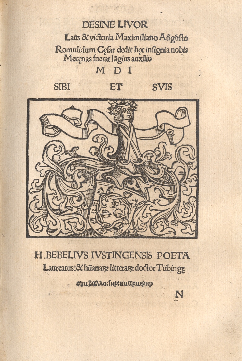 Heinrich Bebel - Coat of Arms as poeta laureatus Source: Opuscula 1508 http://www.uni-mannheim.de/mateo/camena/bebel1/jpg/s153.html