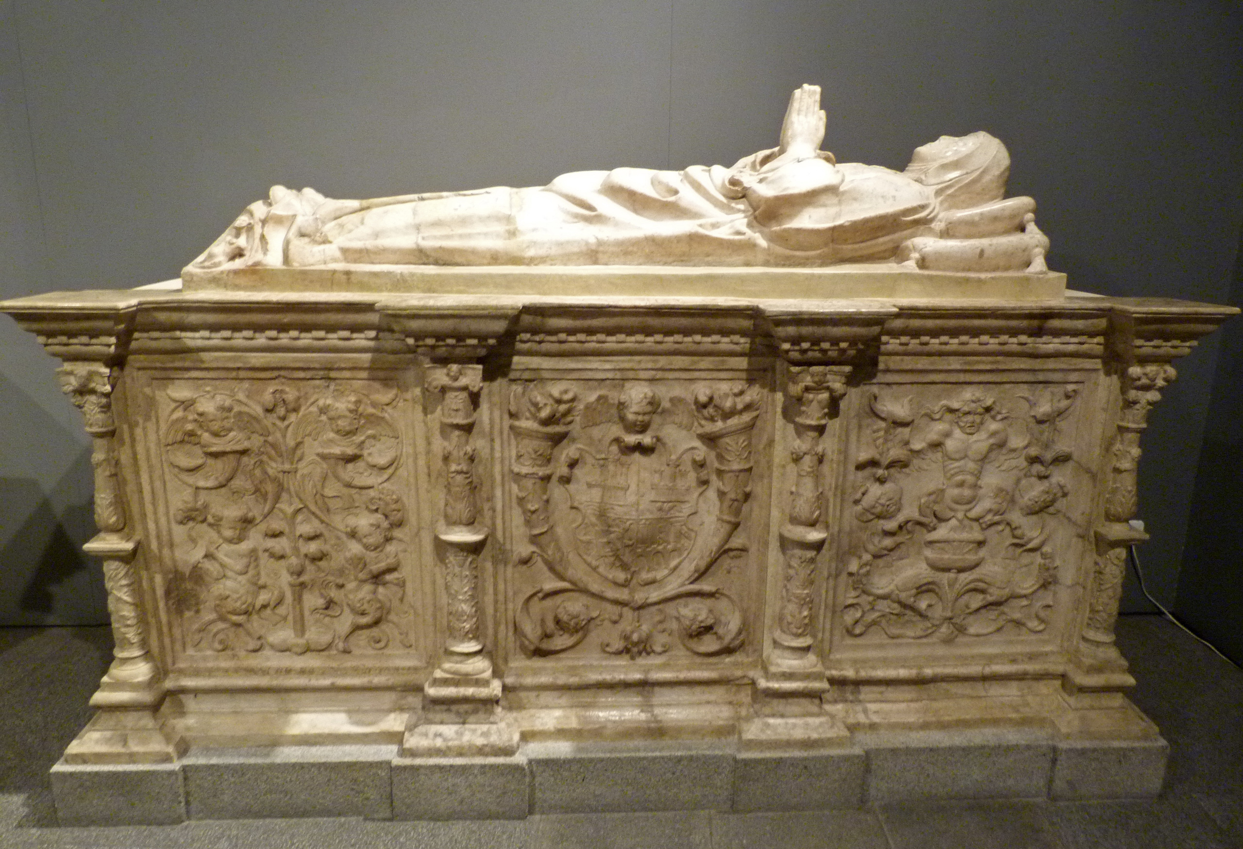 Español: Monumento funerario renacentista a Beatriz Galindo, realizado hacia 1531 que se conserva junto a su esposo Francisco Ramírez en el Museo de los Orígenes de Madrid.