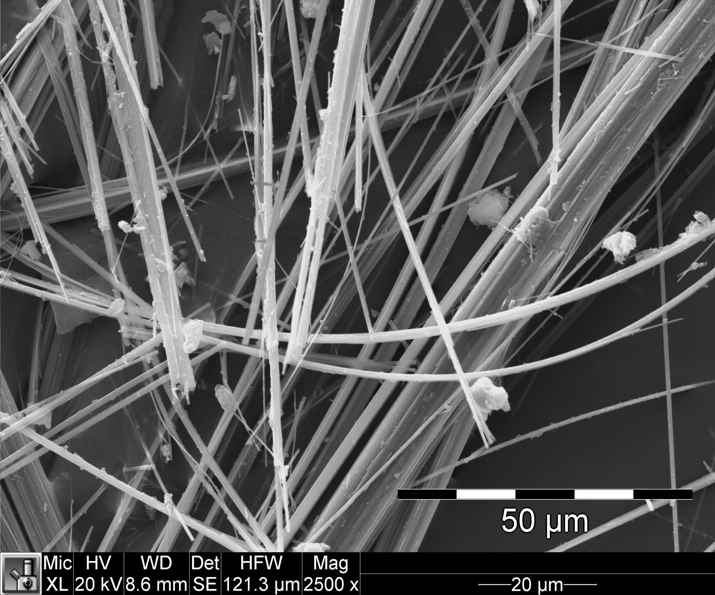 English: Scanning electron microscope image of asbestos fibres (grunerite var. amosite)