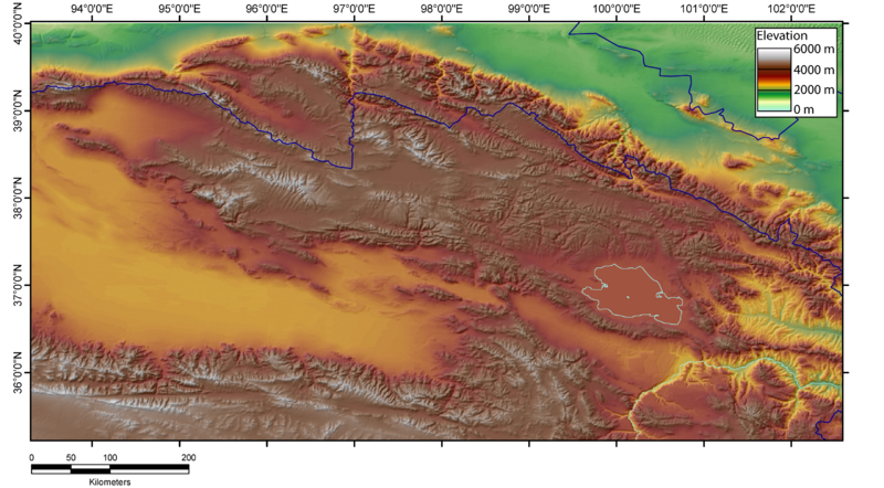 DEM of the Qilian mountains (China) created by Jide from the GTOPO30 database. |