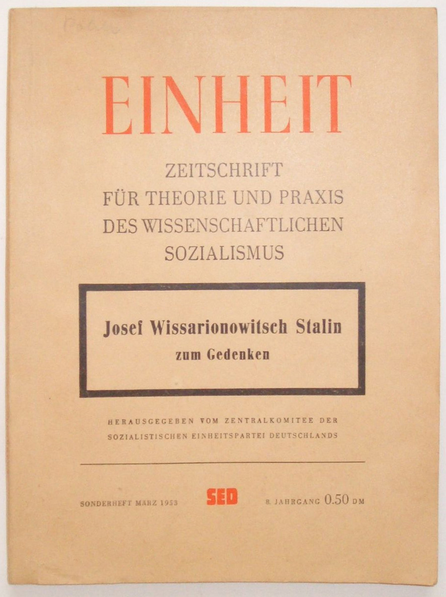 Einheit. Zeitschrift für Theorie und Praxis des wissenschaftlichen Sozialismus. Josef Wissaronotisch Stalin zum Gedenken. Herausgegeben vom Zentralkomitee der Sozialistischen Einheitspartei Deutschlands. Sonderheft März 1953. Dietz Verlag Berlin |