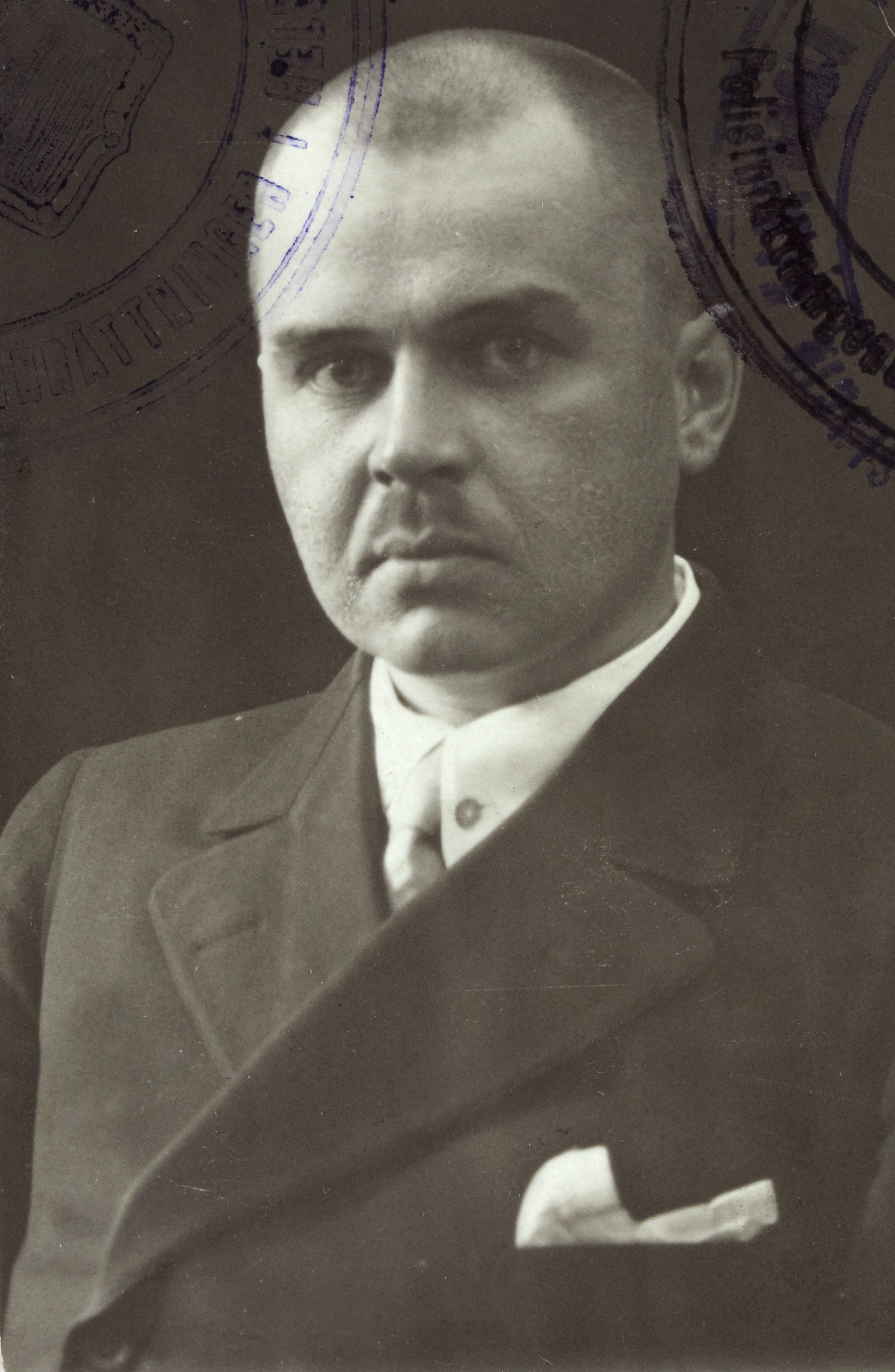 English: Passport photograph of the Finnish writer and journalist Eino Tikkanen (1889–1953).