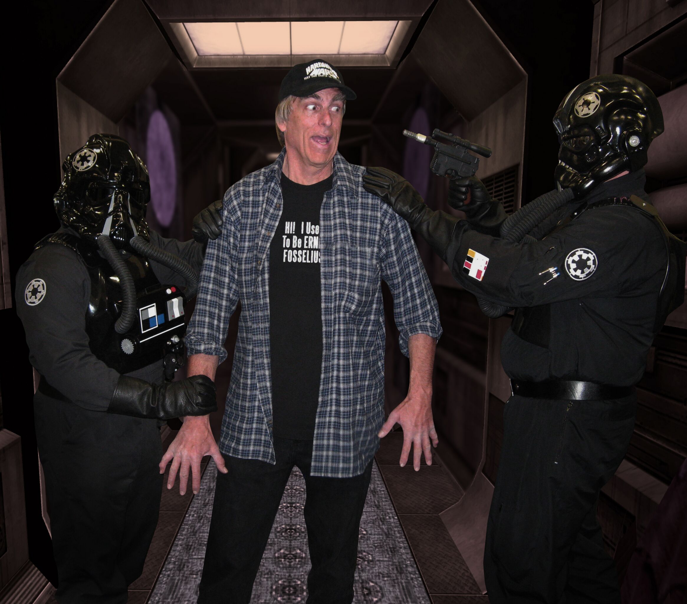 English: Ernie Fosselius with two Imperial TIE Fighter pilots. Photo taken at wondercon 2010.