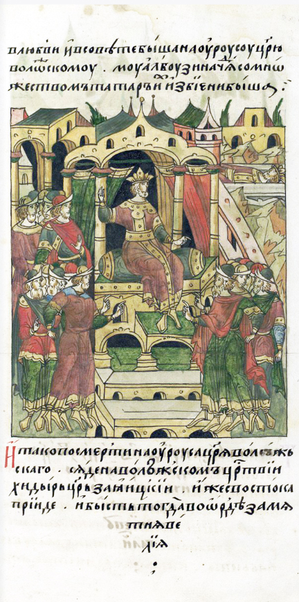 ЛИЦЕВОЙ ЛЕТОПИСНЫЙ СВОД И после смерти Науруса, царя Волжского, на Волжском царстве сел Хидырь, царь Заяицкий, который пришел с востока. И была тогда в Орде смута великая. |