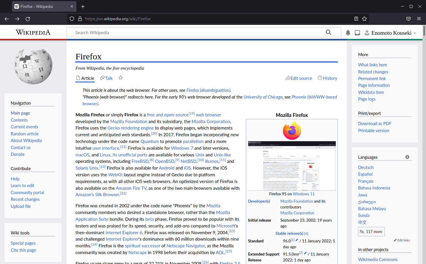Mozilla Foundation, Wikimedia Foundation, and contributors Screenshot: VulcanSphere |