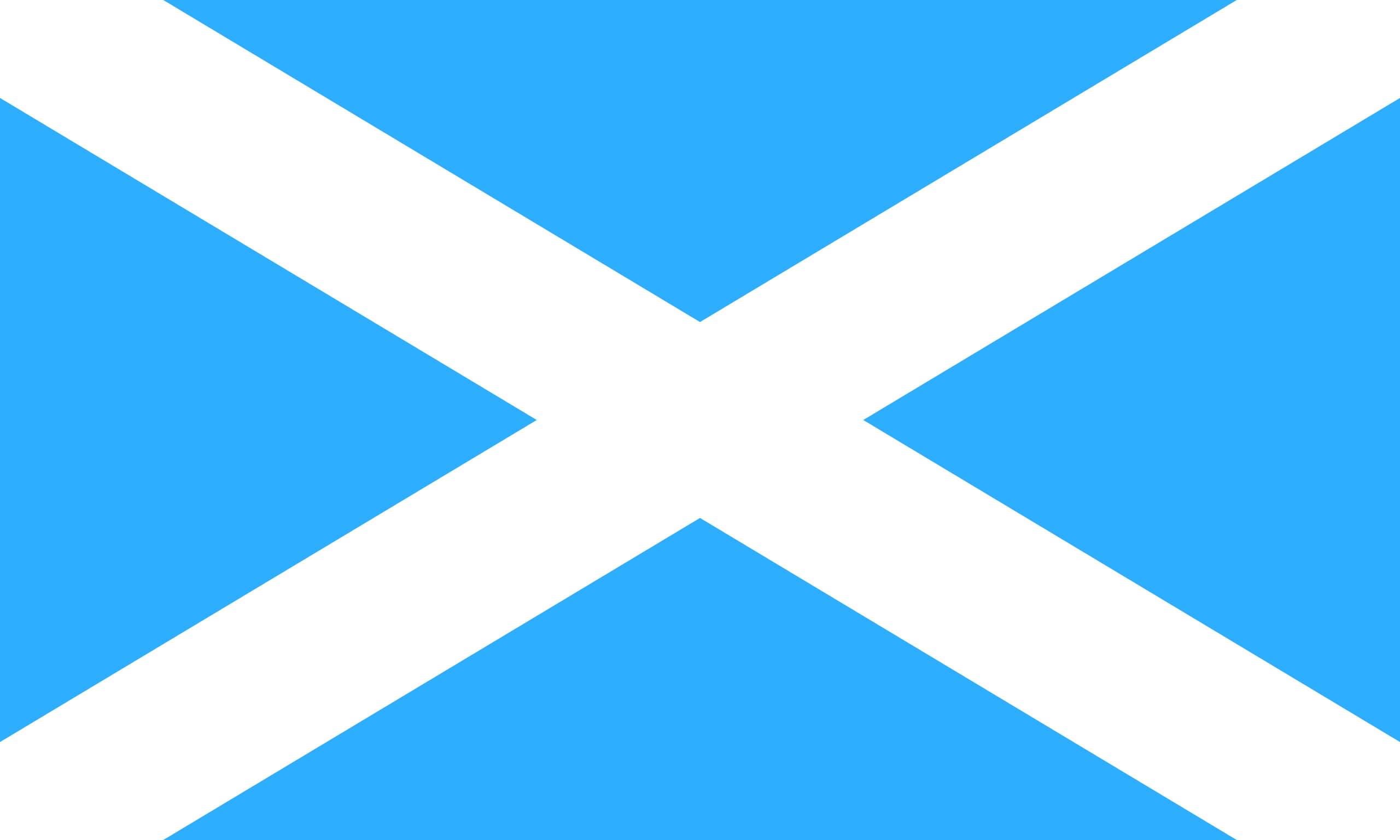 Flag of Scotland, prior to color standardization by the Scottish government in 2003. Ratio 3:5. The blue used is the traditional "sky blue". See also the official post-2003 colors: Image:Flag of Scotland.svg.