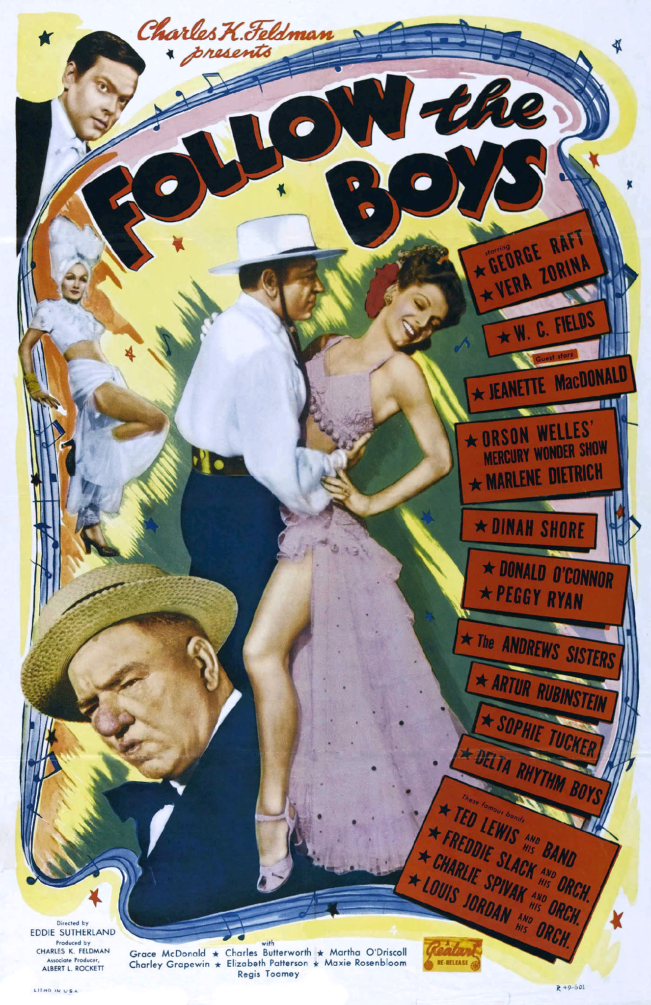 English: Poster for the 1949 re-release of the 1944 film Follow the Boys.