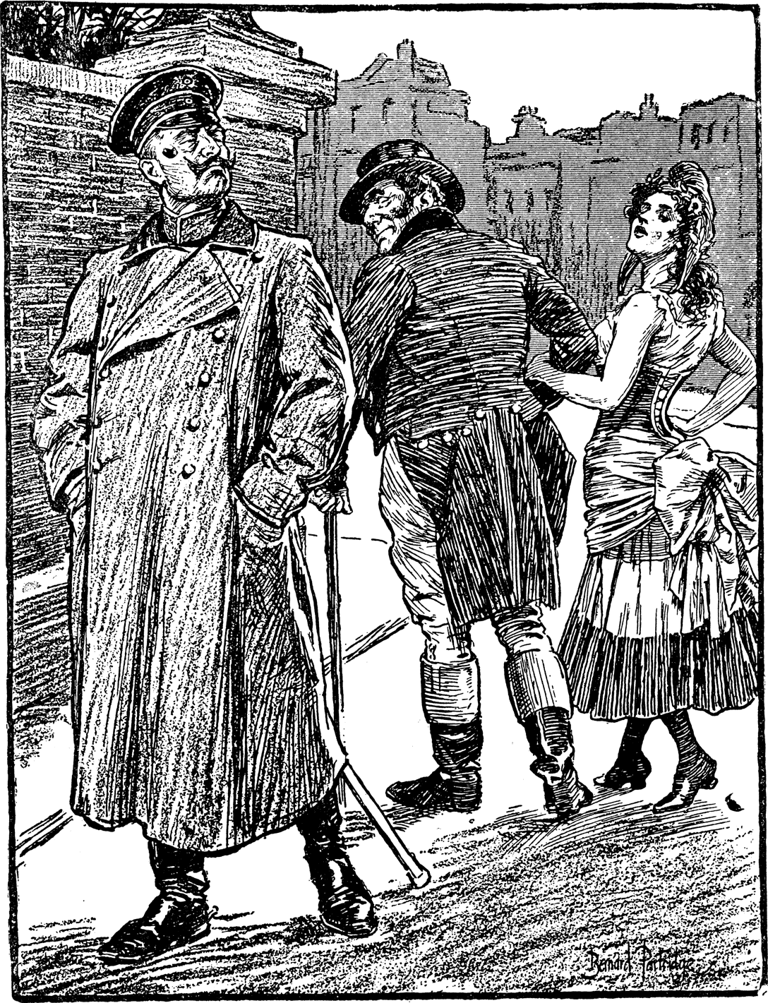 كرتون عن الاتفاق الودي من وجهة نظر ألمانية، يظهر فيه جون بول (ممثل بريطانيا) متوكئاً على عصا مع فتاة الليل ماريان (التي ترتدي فستان بالألوان الثلاث لعلم فرنسا، وينظر خلفه إلى قيصر ألمانيا. طرف غمد سيف يظهر من تحت المعطف العسكري الألماني، مما يشير إلى اتجاه محتمل لاستخدام القوة.