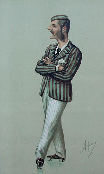 Caricature of Mr Herbert Praed MP. Caption read "The Philanthropist". Praed was a Conservative MP, fencer, roller-skater and racquet player. He worked to improve the condition of the working class. Praed Street in Paddington, London is named after him. |