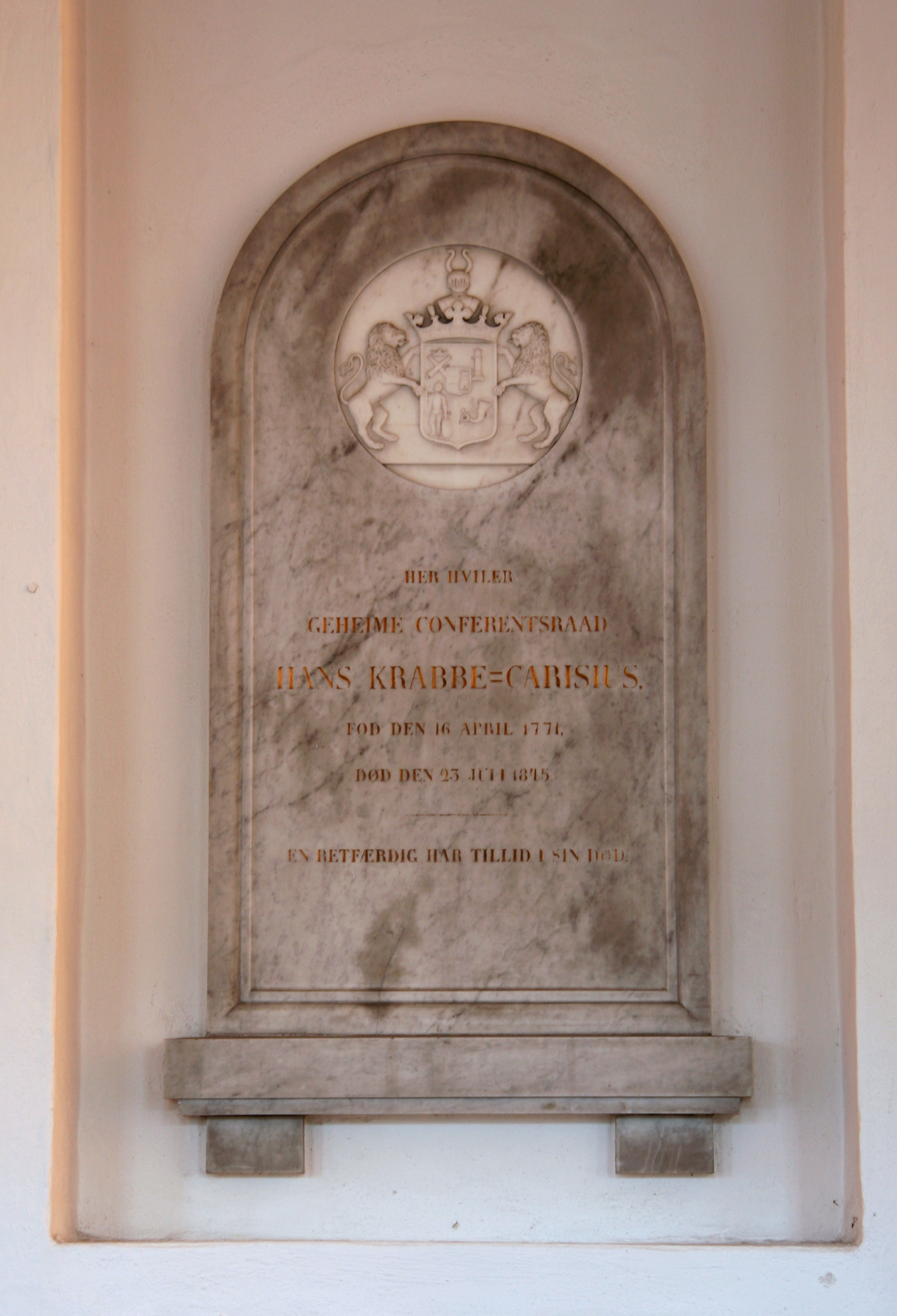 Holmens Kirke, Copenhagen, Denmark . Hans Krabbe-Carisius' epitafium i store kapel. 1845. |