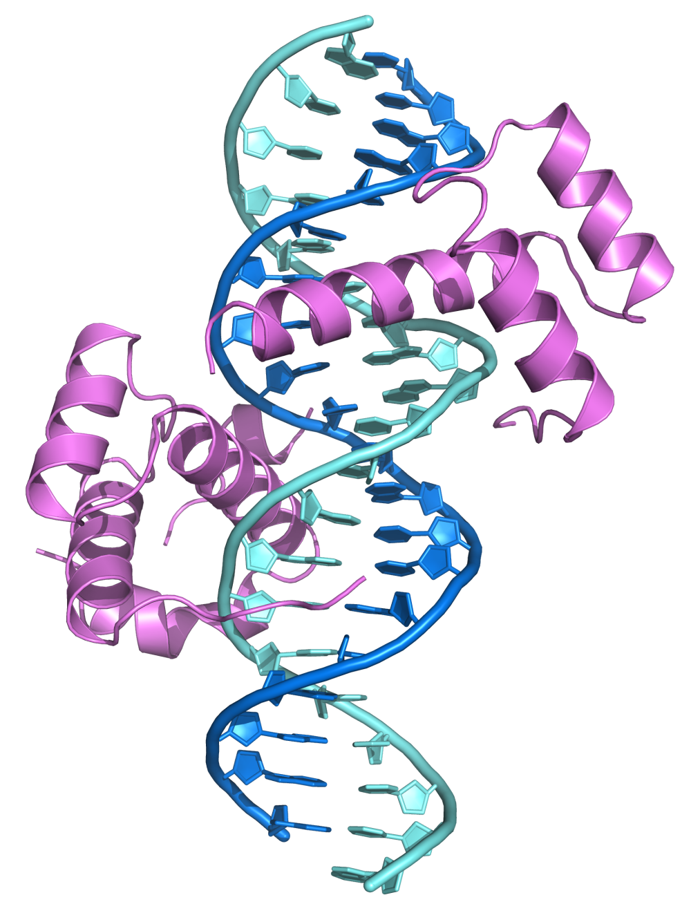 ملف:HoxB1-Pbx1 heterodimer binding DNA 1b72.png