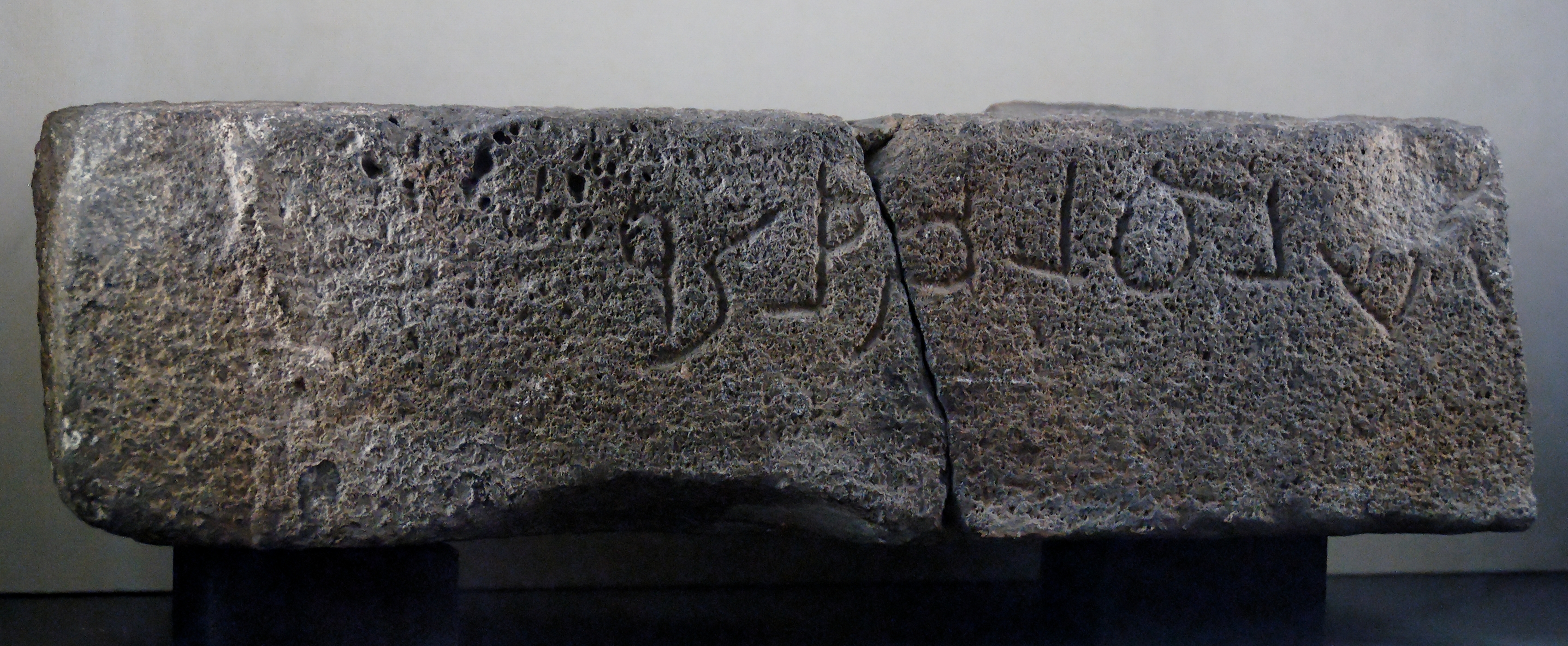 Français : Fragment d'une dédicace en nabatéen au dieu Qasiû. Basalte, Ier siècle ap. J.-C. Provenance : Sia, Hauran, Syrie du Sud.