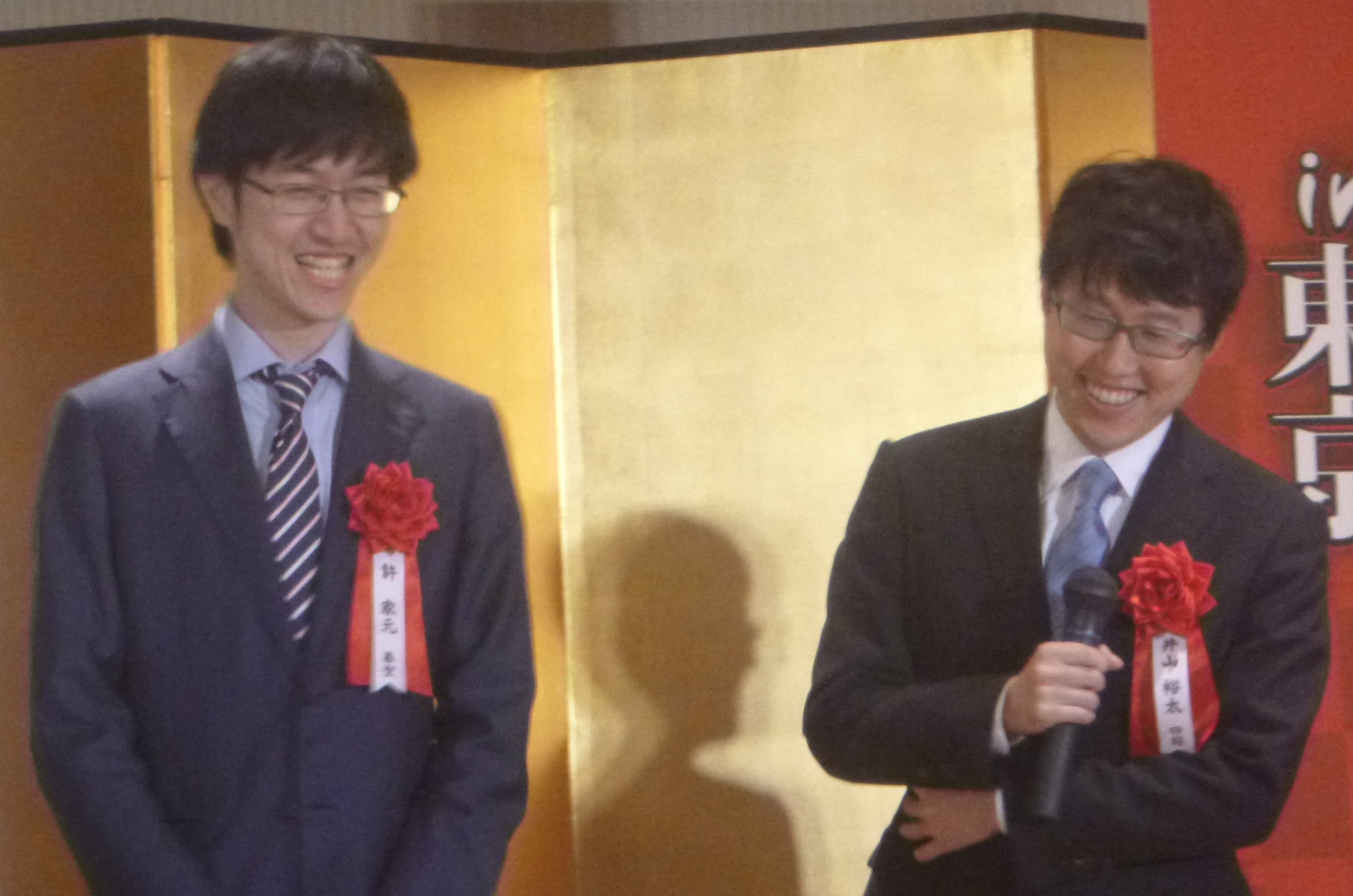 English: Taiwanese go player Hsu Chia Yuan (left) and Japanese go player Yūta Iyama (right) at the talk session of Hankyū Nōryō Go Festival in Minato, Tokyo, Japan.