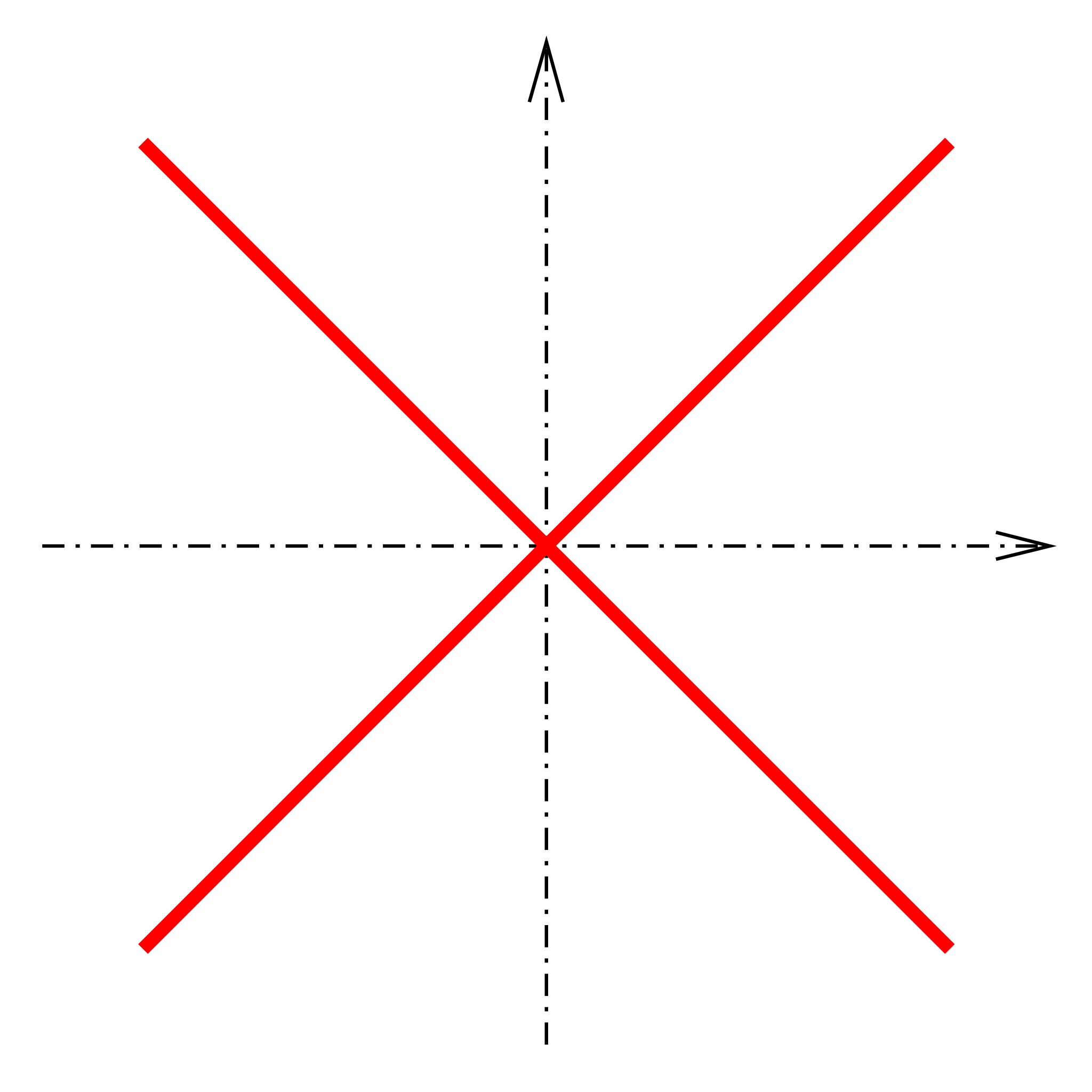 English: Degenerate conic: intersecting lines Deutsch: ausgearteter Kegelschnitt: schneidende Geraden