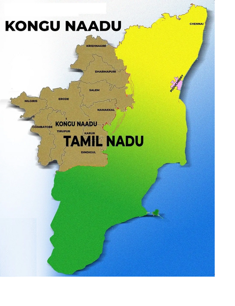 English: Kongu Nadu map - region in TN, Kerala. KR