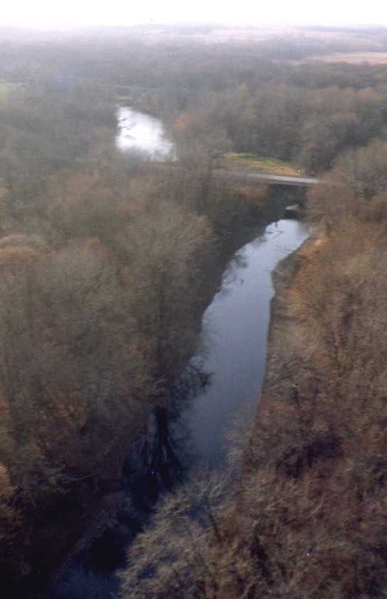The w:La Moine River in w:McDonough County, Illinois. From site http://il.water.usgs.gov/proj/lirb/aerial/colmar2us.html. (File is http://il.water.usgs.gov/proj/lirb/images/colmar2us2.jpg). |