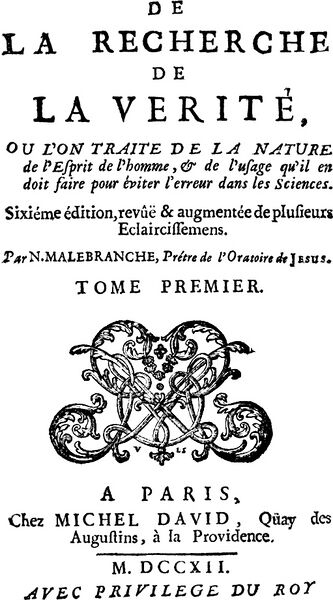 ⧼wm-license-information-source⧽ | De la recherche de la vérité. Où l'on traite de la Nature de l'Esprit de l'homme, & de l'usage qu'il en doit faire pour éviter l'erreur dans les Sciences. A Paris, Chez MICHEL DAVID, Qüay des Augustins, à la providence, 1712 |