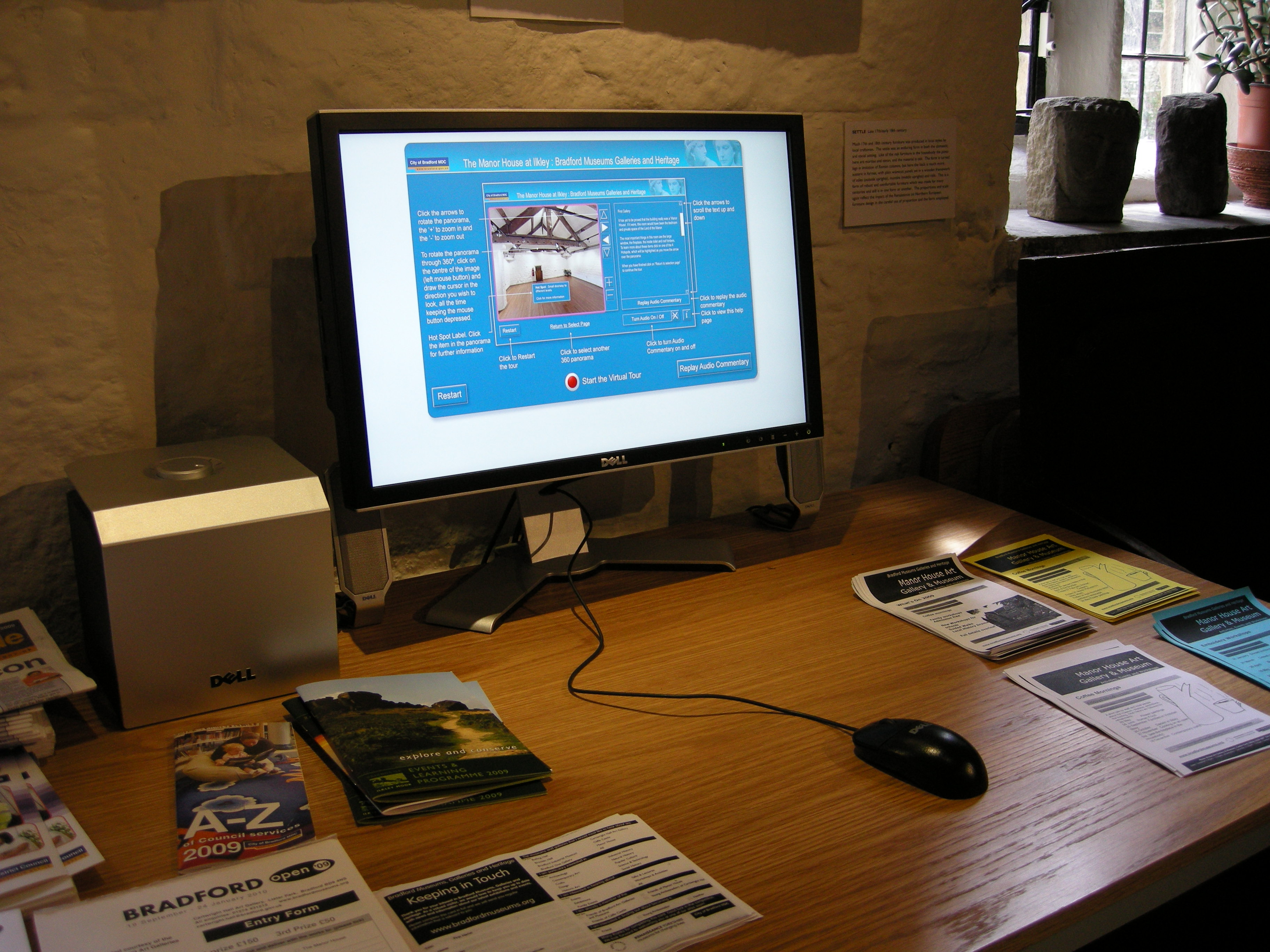 English: Screen giving virtual tour of upper floor of museum, because there is no disabled access upstairs. In Manor House Museum, Ilkley.