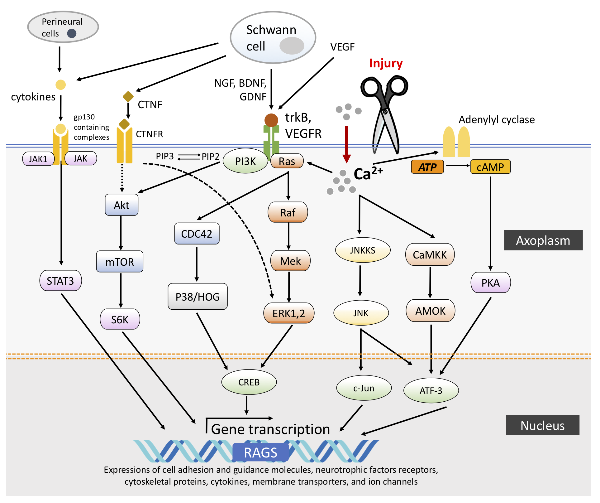 English: Signaling pathways that are upregulated in response to nerve injury.