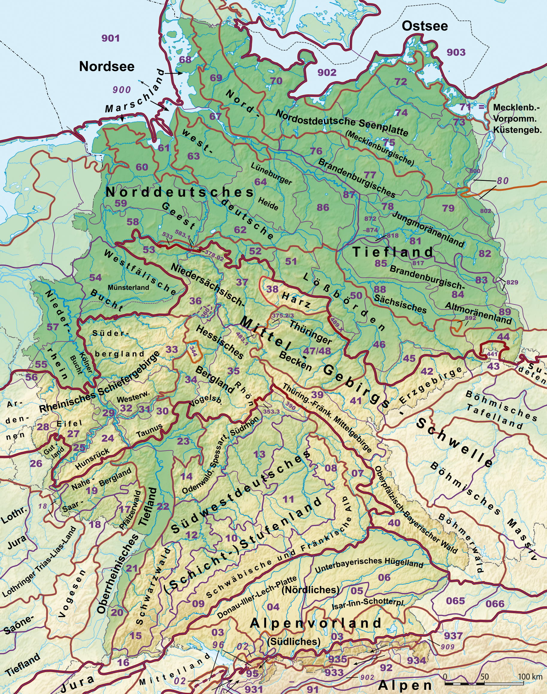 Deutsch: Karte der Naturräumlichen Großregionen Deutschlands
